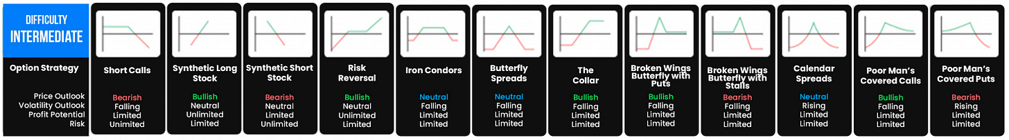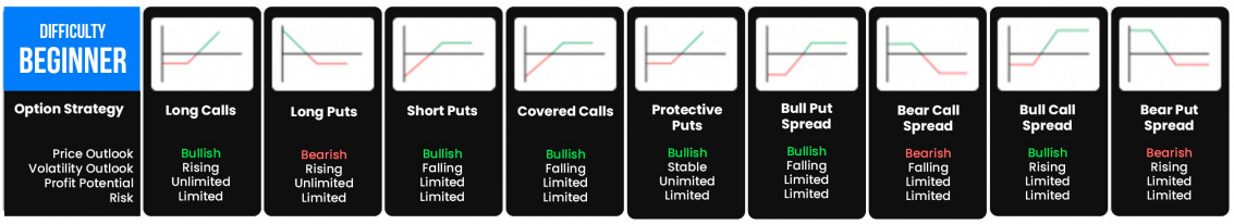Limited: Spreads (bull call, bear put), iron condor, covered calls/puts.