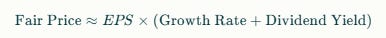 This relationship helps investors estimate a target price that fairly reflects fundamental growth and income characteristics in a single figure, enabling quicker and more comprehensive valuation judgments than P/E or PEG alone.