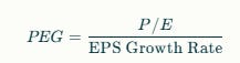 The PEG ratio addresses this by dividing the P/E ratio by the company’s projected EPS growth rate (G):